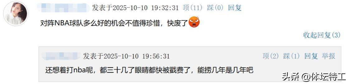 从另一角度看,郭艾伦不随队去美国打NBA季前赛也并非毫无道理。毕竟他已经三十多岁,上赛季原本还有重新回到巅峰的势头,但却在一次意外中被队友误伤,眼睛险些受损。如今在商业价值仍然较高的阶段,他更倾向于多争取一些曝光和收益,以便未来退役后仍有市场。要知道,顶着“亚洲第一后卫”的名号,他的巅峰时曾引来欧洲豪门帕纳辛纳科斯的兴趣,球队甚至为他准备了合同。可惜辽篮不放人,错失了在欧洲顶级联赛打球的机会。长时间的困难时期里,郭艾伦一直站在球队前面拼搏,最终却因为索取某些特权而被清出队伍,甚至受到部分辽篮球迷的指责。