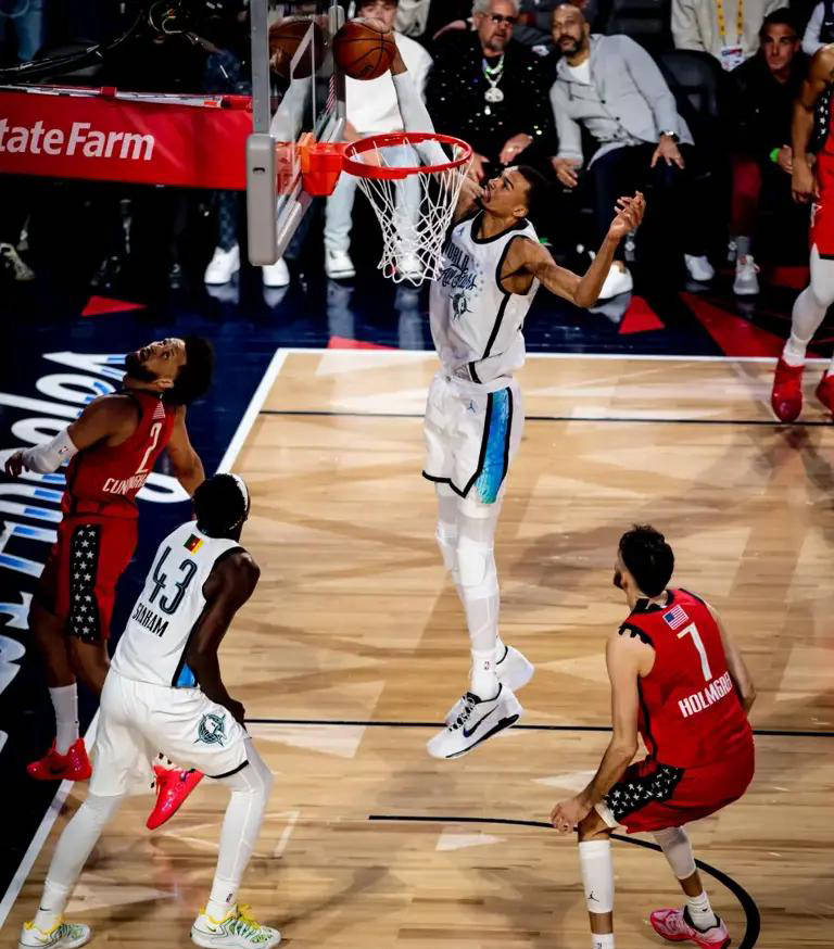 同样站出来的还有以色列前锋阿夫迪亚,他盛赞文班亚马在全明星赛上的坚强斗志,认为这位2023年状元更值得获得球队的重点支持,尽可能多地让他成为终结球员。相比之下,加拿大后卫穆雷处境尴尬,但美国队的多诺万·米切尔也对文班亚马给予了积极评价:“说实话,我比赛时只是在热身,没有仔细盯场上,但凭借上赛季与他做队友的经历,我知道他肯定会站出来带头,主动迎战所有挑战者,并点燃全场氛围。”