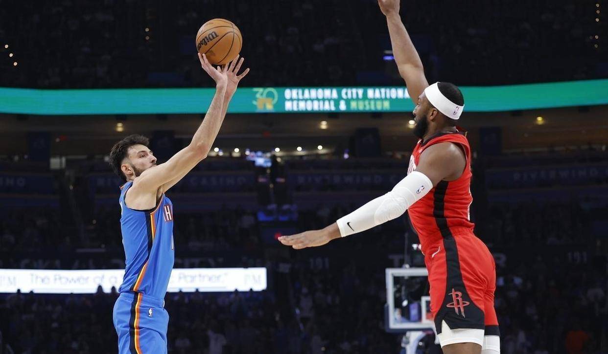 第一个加时赛,雷霆率先发难,切特和亚历山大各中一记三分,雷霆取得6分领先。 申京篮下勾手命中,史密斯三分得手,火箭紧咬比分。 最后15秒,申京两罚一中,火箭仍落后1分。 雷霆进攻不中,火箭暂停后申京自投自抢,扣篮将比赛拖入第二个加时。