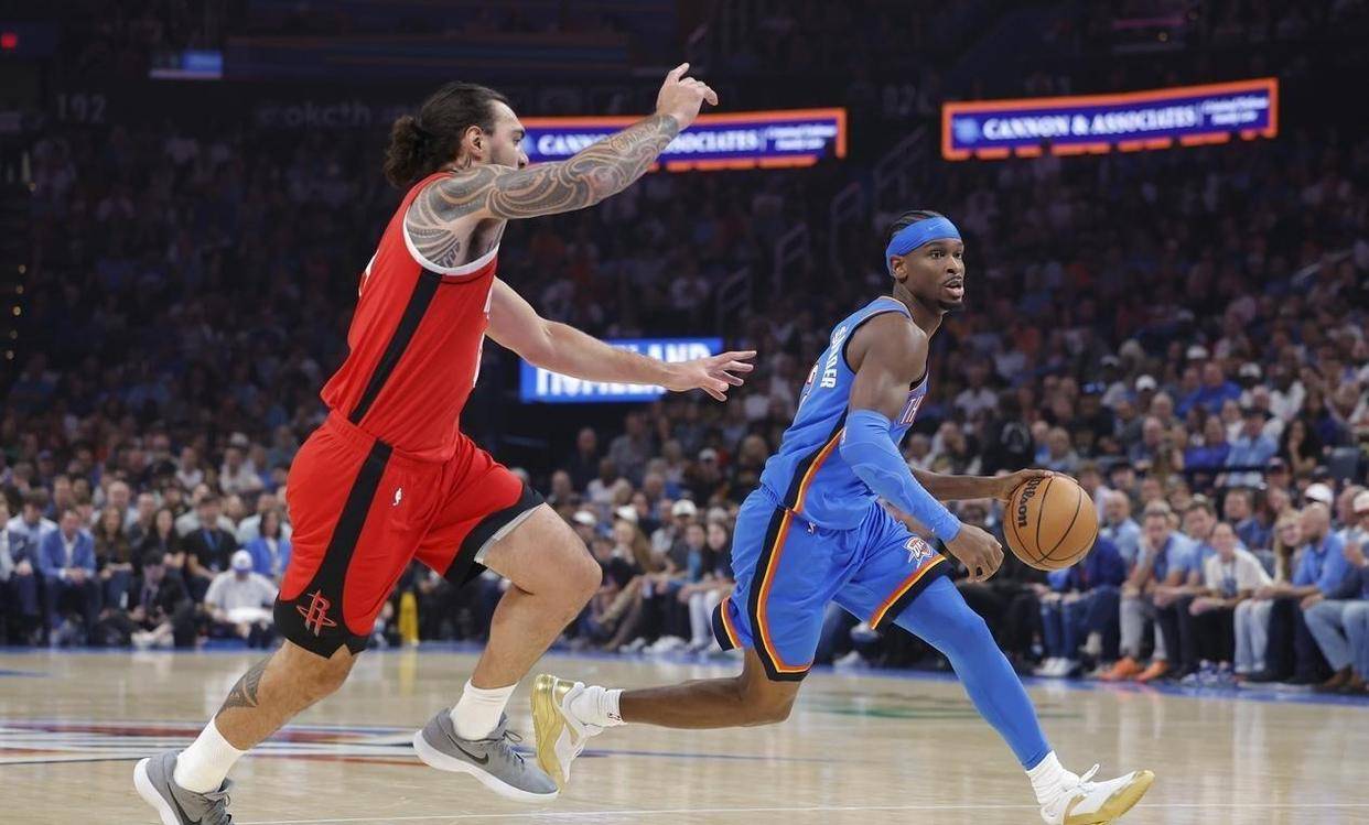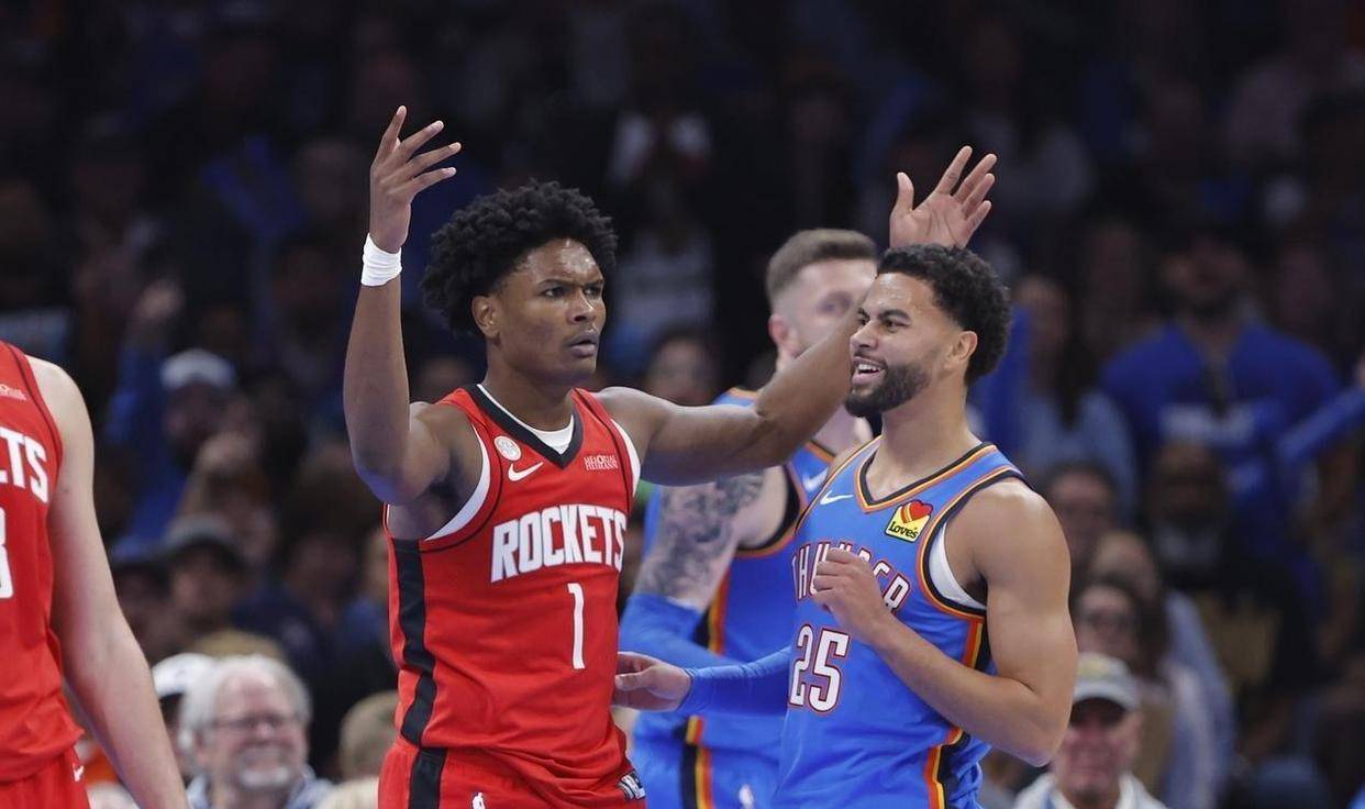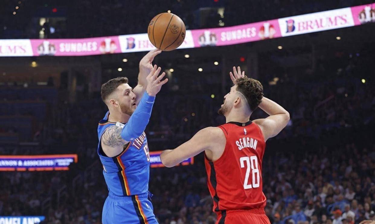 首节切特·霍姆格伦如同雷霆的闪电,他第一次进攻就打成2 1,随后三分、中投连连得手。 火箭的防守在他面前像慢动作回放。 单节5投全中,独得13分。 但火箭的回应很快到来。 阿门·汤普森连续冲击内线。