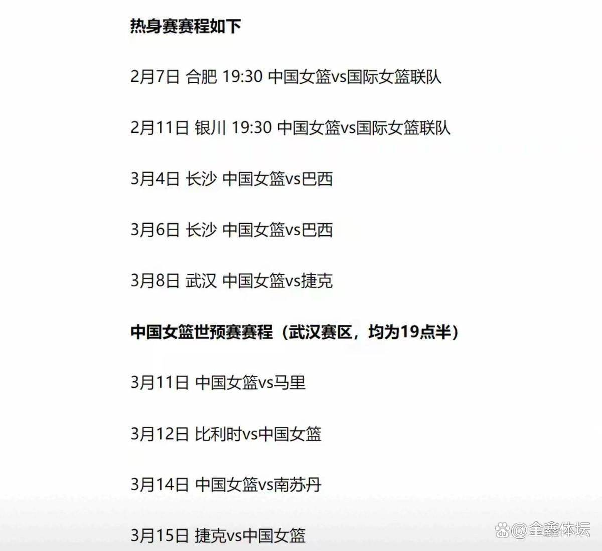 所有的一切,都是为了3月11日那个起点。 世界杯的舞台很大,但通往舞台的这条资格赛通道,却有点窄。中国女篮的二月热身之旅,在一片大胜的欢呼声中结束了。球员们可以暂时解散,过个春节。但所有人都知道,春节过后,集结号再次吹响时,等待她们的,将是不能再输的战斗。